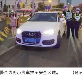 原标题丨车辆没油“瘫”在路上 交警推车疏导交通