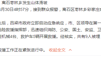 山西吕梁发生山体滑坡共9人被埋3人确认死亡