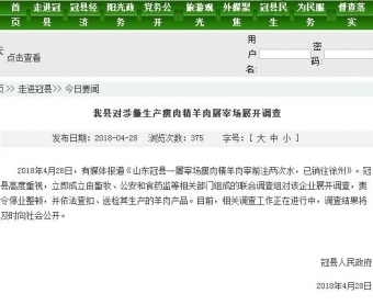 山东冠县屠宰场售瘦肉精羊肉 官方:责令停业整顿