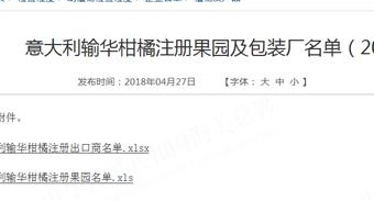 中国质量新闻网讯 4月27日,海关总署官网公布意大利输华柑橘注册果园及包装厂名单(20180427)。