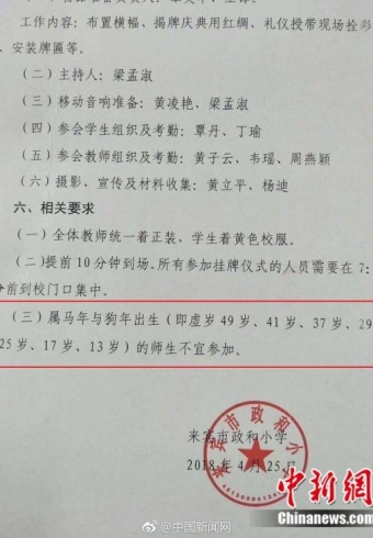 学校揭牌,不让属马和属狗的师生参加。听着像段子,却是真实发生的事情。