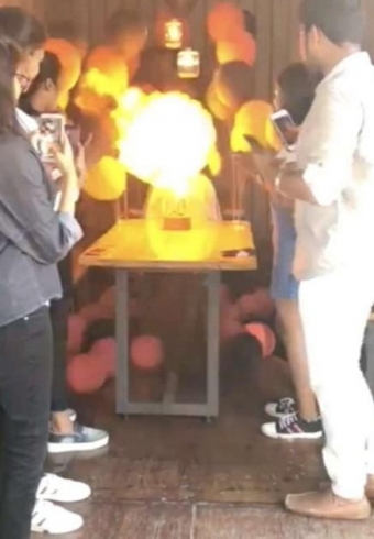 印度女孩点燃生日蜡烛引氢气球爆炸 身陷火海