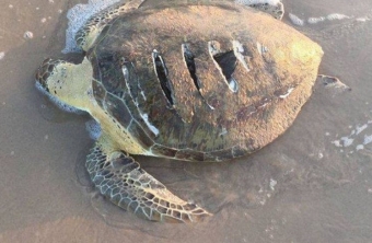 海滩边看见一只乌龟趴着不动,靠近一看,被背上的伤痕吓坏了!