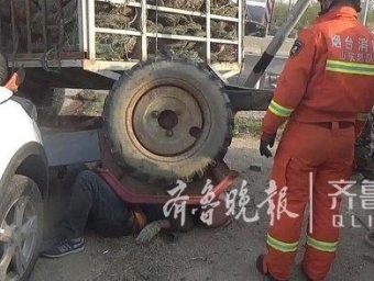 原标题:拖拉机失控180°撞车侧翻,招远消防救出被压司机