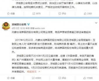 凉城公安局通报"鸿茅药酒案":坚决贯彻公安部指示