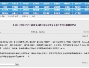 原标题:中国人民银行决定下调部分金融机构存款准备金率以置换中期借贷便利