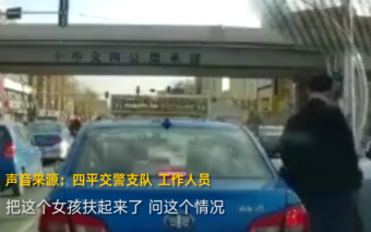 女孩开车门剐到旁车 自打耳光下跪求原谅