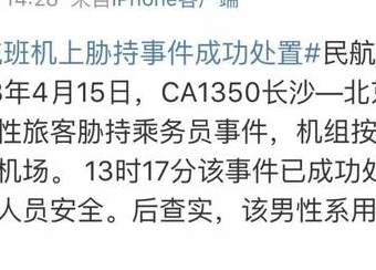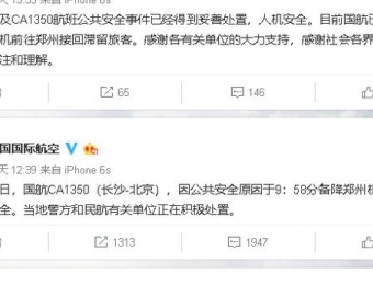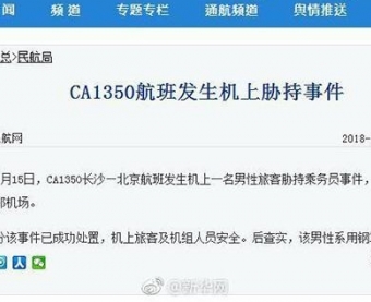 国航航班备降原因查实:一男子用钢笔在飞机上劫持人质