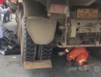 女子被卷入后八轮车底 消防官兵合力推车把人救出