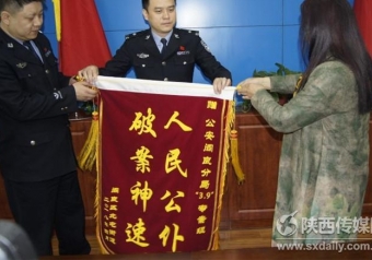 4月13日上午,西安市公安局阎良分局民警将追过的15万元发还到王女士的手中,王女士接过钱激动地说:“我想这15万元石沉大海了,没想到你们这么快把我的钱全部追回,多亏你们了。”并深深的鞠了三个躬。为了表达感激之情,王女士送来“人民公仆,破案神速”锦