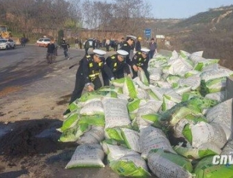 铜川一货车侧翻 5 吨化肥倾倒一地 热心民警当搬运工