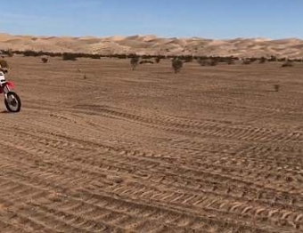 摩托车在沙丘上撞碎后翻倒在地,只留下几处瘀伤