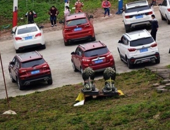 重庆一景区现身40度斜坡停车场,瞧,停在上面的汽车都歪歪扭扭的,看起来好有意思啊,那都是因为地势倾斜造成的。(图片来自东方IC)