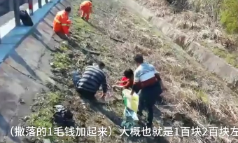 3月11日,浙江松阳,高速上货车爆胎撞护栏,车上2万多元的硬币散落在护栏外的山坡上,经过两个多小时的寻找,高速交警和巡查帮忙捡回了大部分的硬币。网友:真正的捡钱捡到手软!
