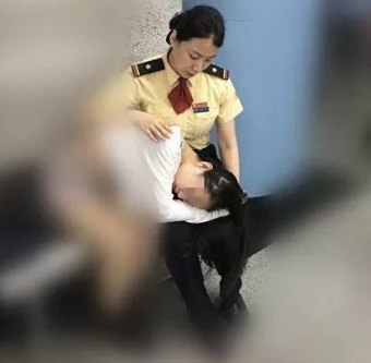 6日,一名女乘客在一号线体育西路站站台上身体不适,车站工作人员及时进行救助,在救助过程中,车站员工用大腿给女乘客当“靠枕”的画面感动站台上的乘客。