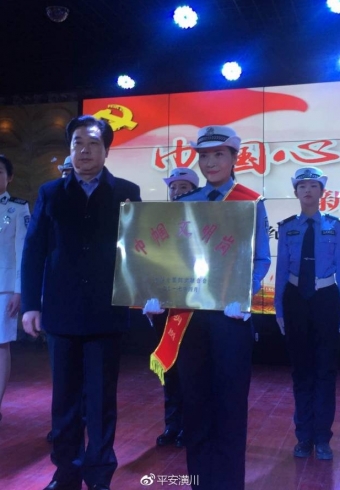 2018年3月8日下午14时30分,潢川县女子交警岗全体队员参加县妇联组织《潢川县纪念三八国际劳动妇女节108周年暨脱贫攻坚表彰大会》,会上,女子交警岗王清朗诵诗词《路上的执着----献给潢川女交警》。
