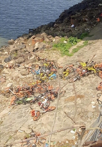 3月9日,据网友@FX完夏 爆料称,南昌八一大桥赣江畔,有多个品牌的共享单车被从江堤上扔到赣江江岸,粗略一看多达几十辆,共享单车在给广大南昌市民带来极大的方便的同时也不幸遭此厄运,也有网友反应称这是一些黑车司机和摩的司机出于利益之争做出这些不齿之