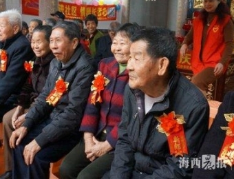 穿盛装、戴胸花,21 对老人在翔安祖祠里留下最美合影