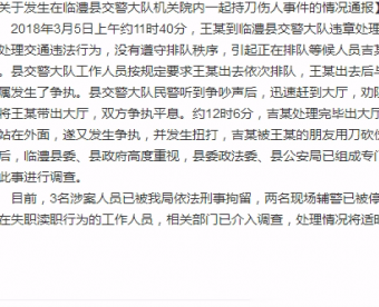男子因排队问题交警队内被砍 3人被拘2辅警被停职