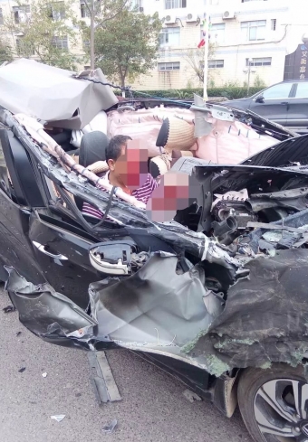 3月3日下午,在桂林荔浦荔桂路某食品厂附近发生一起车祸,一辆银色大众小车和一辆黑色本田小车停在路边,黑色本田小车车顶损毁十分严重。