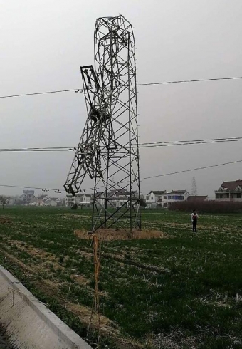 2018年3月4日下午3时许,在我市丁堰镇境内,发生短时龙卷风,造成110kV园江线19号塔倒塔,末造成停电。供电公司负责人第一时间赶到现场,启动应急预案,组织安质、运维等部门人员立即进行抢修。