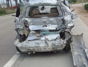 前两天,一辆东风日产小车行驶到黄杨大道时被大车追尾,遭推行100多米,车尾直接被削掉了一半,成了“的士头状”!其中一名司机还被困在驾驶座里没法动弹……