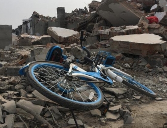 在城乡结合部拆迁现场,看到几辆共享单车静静地躺在拆迁过后的废墟中,不知道这些共享单车啥时候才能回到我们城市当中?是不是真的被我们遗弃了?