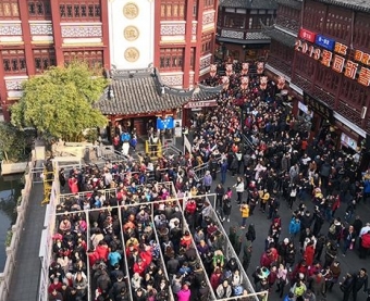 大年初二,上海豫园迎来大客流,全天游客总数预计在20至25万之间。