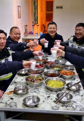 人民网上海2月16日 单位即家庭,同事即手足!大年三十,上海普陀公安分局很多民警坚守一线,一起度过了难忘的除夕夜。衷心祝愿除夕夜放弃与家人团聚坚守在一线岗位的民警们。愿在新的一年里身体健康,阖家幸福,狗年旺旺旺!当然还有,天冷,执勤时要多穿一点