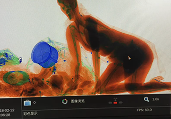 火车站安检机内现人形图像 担心钱财丢失连人带包钻入
