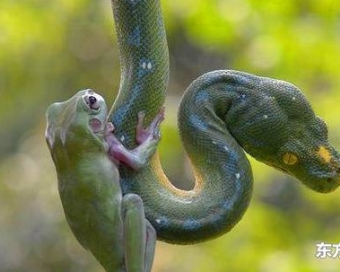 一只青蛙跳到一条蛇身上,然后发生的一幕让人感受非常不测!