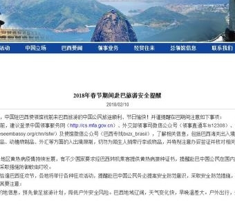 中新网2月11日电 据中国驻巴西里约热内卢总领事馆网站消息,新春佳节将至,中国驻巴西使领馆祝赴巴西旅游的中国公民旅途顺利、节日愉快!并谨提醒在巴期间注意如下事项: