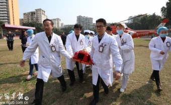 2月8日,武宣县一名脑干出血的危重病人为了获得更好的救治,通过直升机转运到南宁。这是2017年广西开通航空医疗救援通道以来第二名受益的患者,也是首名自费“打飞的”看病的患者,价格为每小时4万元。