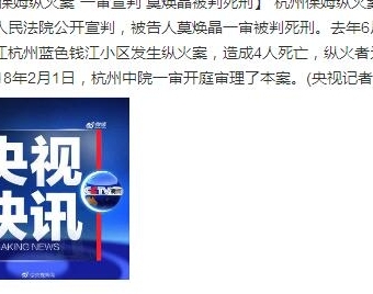“杭州保姆纵火案”一审宣判 莫焕晶被判死刑