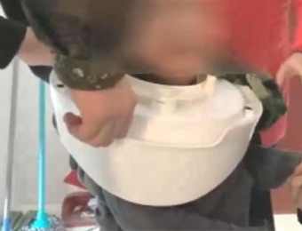 昨天中午一点多钟,南京消防鼓楼中队来了焦急万分的一家人,一个大人抱着三岁的男孩,男孩的颈部被一个白色的塑料圈套的严严实实。消防人员仔细询问后得知:套住男孩头部的塑料圈是马桶套,当时孩子家玩耍,不小心头部卡进了放置在地下的坐便器马桶盖里边,尽