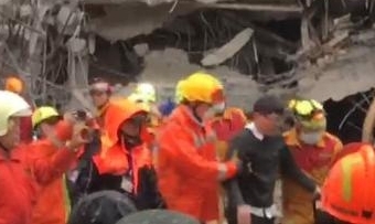 统帅受困人员梁书玮获救 在搀扶下自行走出现场