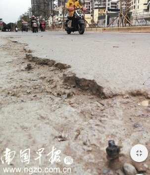 南宁市江南区星光大道石柱岭地铁站D出口前的非机动车道上,几十米长的路面分散有近百个凸出路面的钢筋头。2月2日,有市民向本报报料,记者前往现场采访了解。