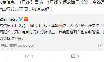 今早上海地铁1号线列车突发故障限速运行 部分乘客出行受阻
