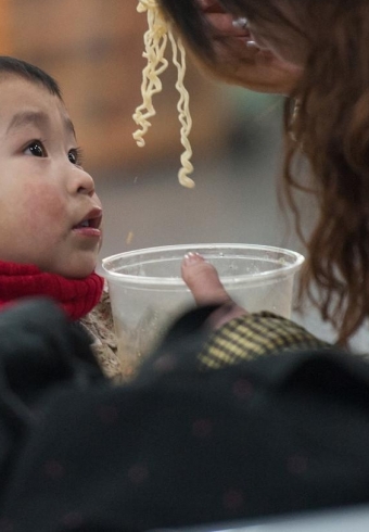 春运,一碗泡面的故事,父母泡面作夜宵,小朋友紧盯着妈妈的泡面
