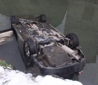 金华一轿车雪路打滑翻入溪水 车内两人受伤被困
