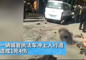 噩梦!城管执法车冲入人行道,致1死4伤!