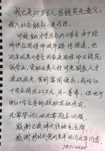 大众网东营2月1日讯1月16日上午,东营市红十字会业务科收到一个匿名老人送来的装有22万元的包裹,老人送下包裹后悄然离去,只留下一个背影和一封表达救助愿望的信。