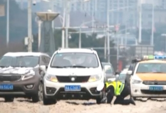 数次摔倒,数次爬起,数次跪地垫衣,直到将轿车推出险境。1月27日,一张交警跪倒在雪地推车的照片,刷爆了江城市民的朋友圈,网友纷纷点赞,亲切地喊他“跪地哥”。