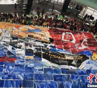 辽宁大连举办百人亲子绘画活动 120名儿童共画航母