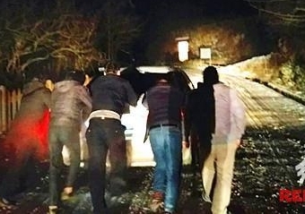 重庆自驾游车辆慕雪而来 黑夜被武陵源“雪警”施救