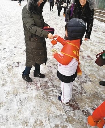 原标题:小学生义卖灯笼 买手套帽子送保洁员
