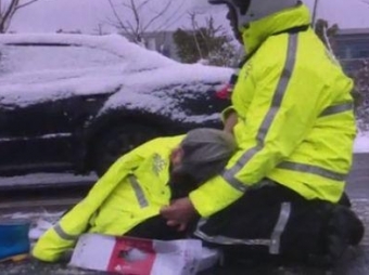 交警雪中执勤摔倒被缝5针 带伤坚守24小时感动网友