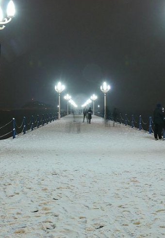 高清:栈桥变雪桥 雪后白色老城区等你来约