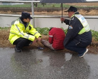 6旬老人被撞骨折 雨雪交加民警推车1公里送医