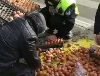 小哥避让行人摔碎鸡蛋 民警看到立马弯腰捡蛋